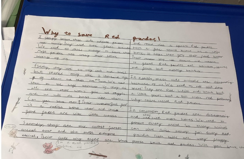Year 3 have been learning about Red Pandas as part of their persuasive writing in English. They really enjoyed learning about them and many of the children did extra work at home for fun. The children brought in donations and they were able to adopt a Red Panda named Ninamma, which means Angel.
